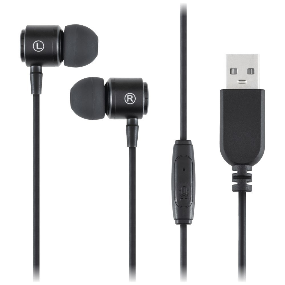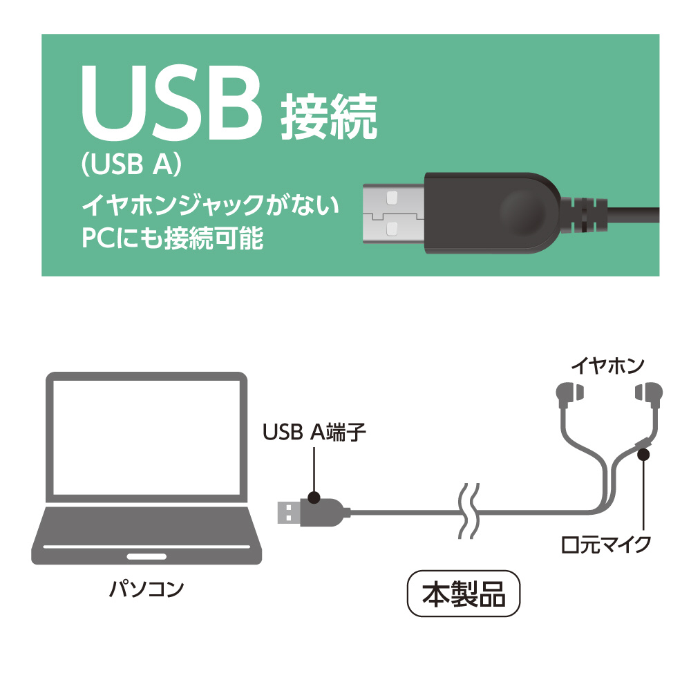 USBに接続するだけですぐに使える、コンパクトで持ち運びに最適なマイク付きイヤホンです。