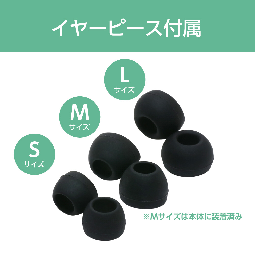 付属品 イヤーピース(S/M/Lサイズ※Mサイズ装着済)、取扱説明書