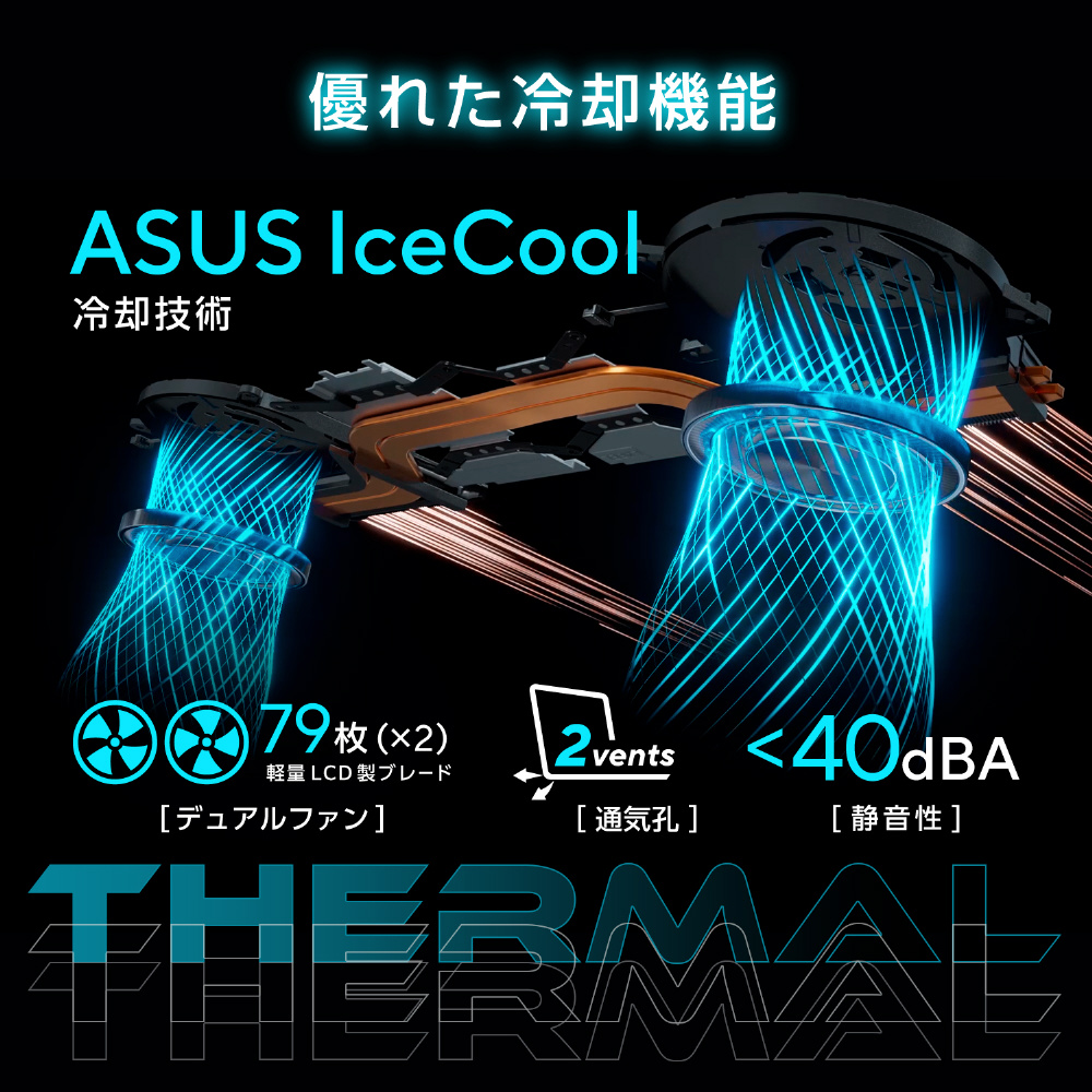 [電源]ASUSスリムパワージャック/150W ACアダプター (20V/7.5A) またはリチウムポリマーバッテリー (3セル/63Wh) [バッテリー充電時間]約2.4時間 [消費電力]最大約150W [エネルギー消費効率]12区分 18.9kWh/年 (AA)