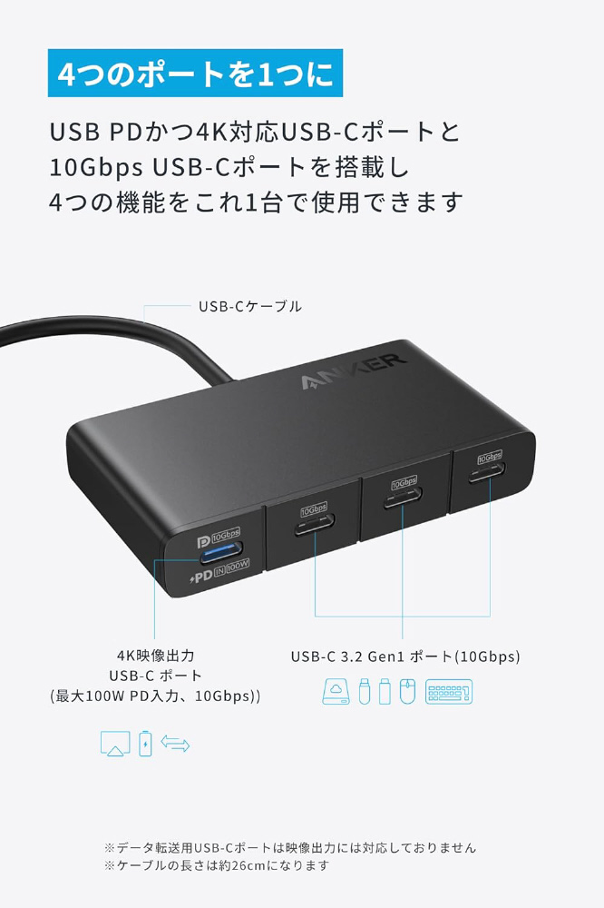 「Anker USB-C ハブ (4-in-1、10Gbps)」