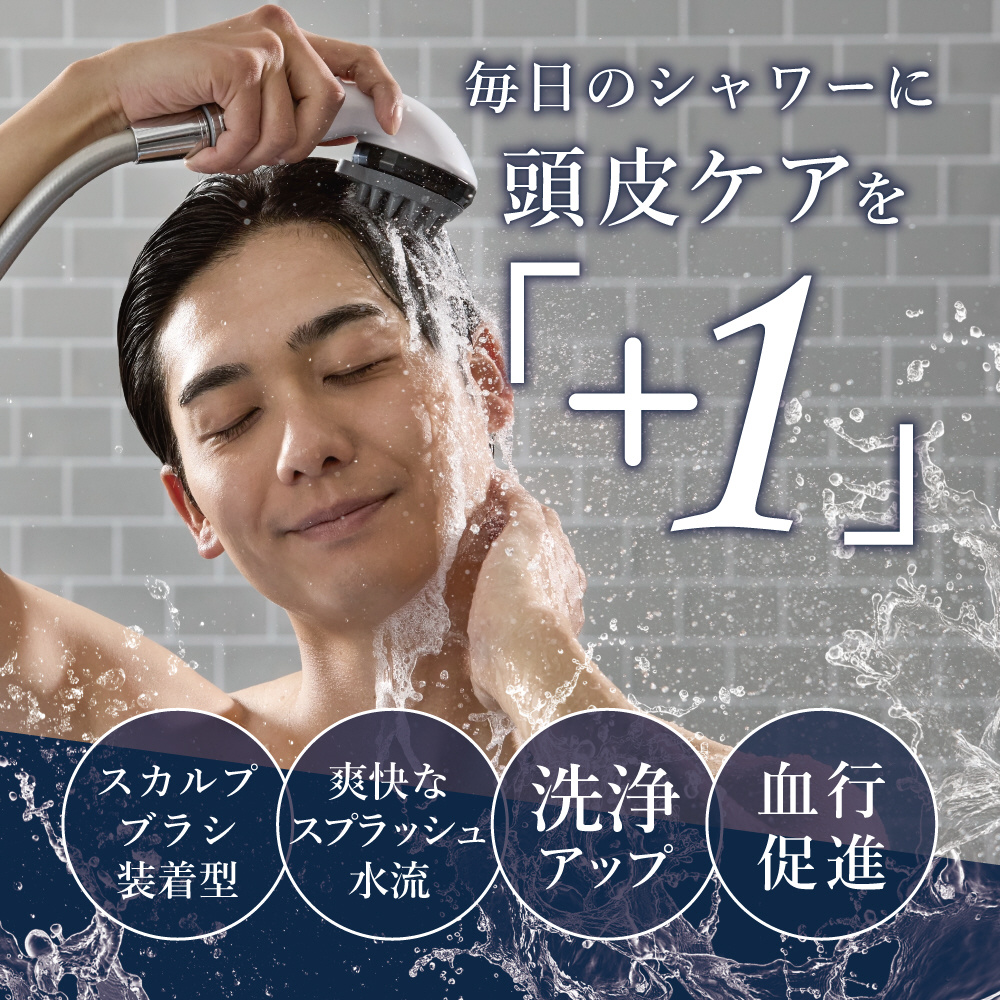 「頭皮ケア」を+1。〜洗髪特化型ファインバブルシャワーヘッド〜ファインバブルシャワーとスカルプブラシの2役が1台になった洗髪特化型のシャワーヘッド。奥まで届くスプラッシュ水流でスッキリ爽快に洗い上げます。