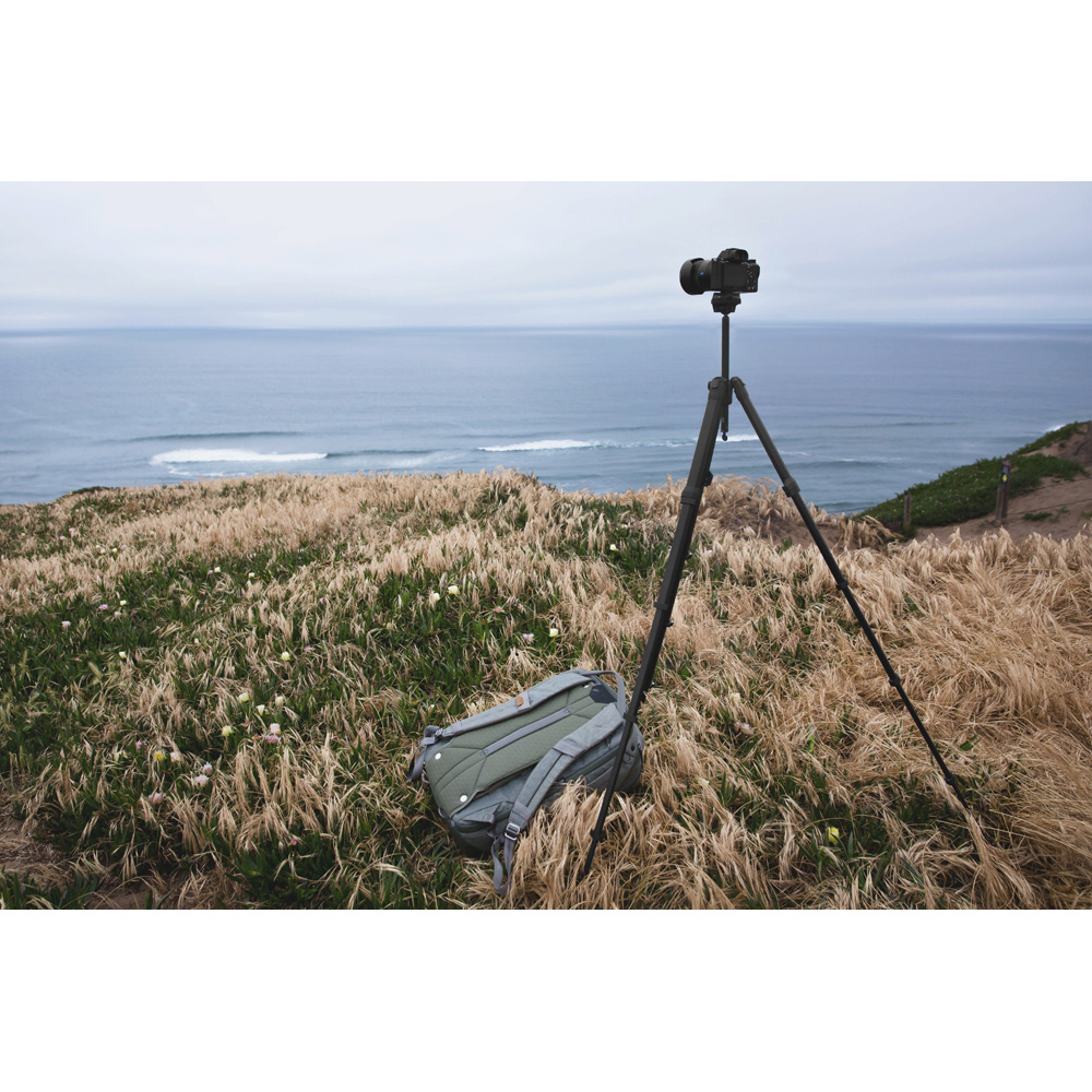 ピークデザインの「トラベルトライポッド」は、三脚本体は徹底的に無駄を削ぎ落とし、ペットボトルほどの太さまでコンパクト化されています。それにも関わらず、撮影に欠かせない高さや安定感、機能性を妥協することなく設計され、移動やロケが多い撮影シーンで圧倒的なパフォーマンスを発揮します。