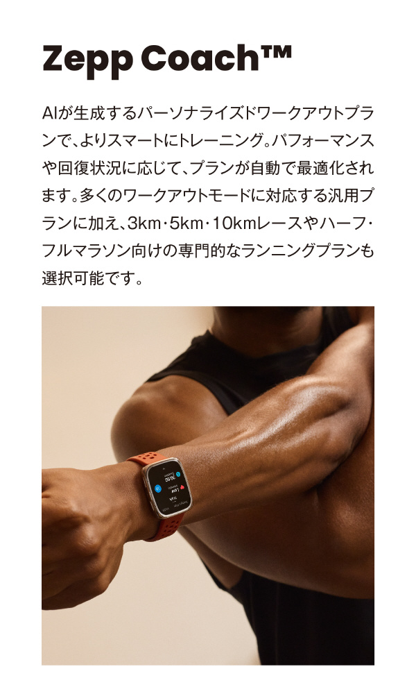 Zepp Coachにより、3K?フルマラソンのトレーニングプランもパーソナライズ。目標達成までを科学的にサポートします。