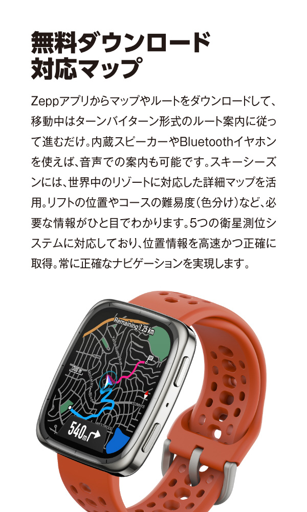 内蔵マイク・スピーカーを使えば、スマートウォッチからそのままBluetooth通話も可能。ビジネスでも日常でも活躍します。