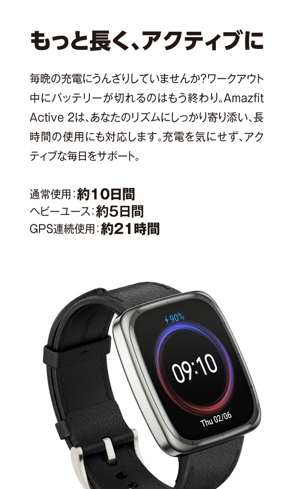 頻繁な充電から解放され、日常もアクティブシーンもバッテリー残量を気にせず使えます。