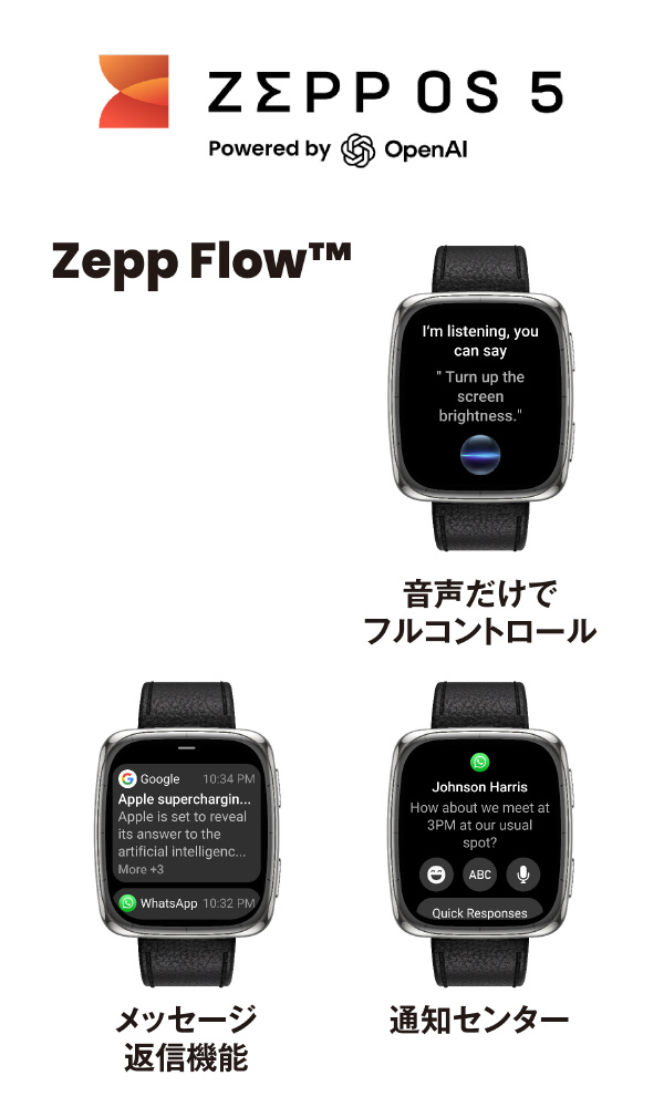 Zepp Flow?による音声操作で、メッセージ返信や機能呼び出しも声だけで完結(Android対応)。