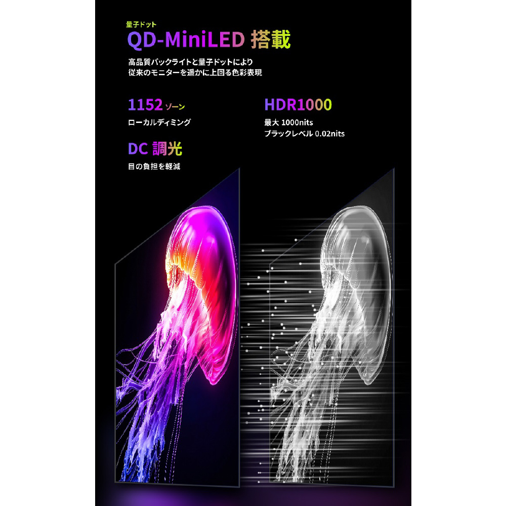 1152ゾーンの量子ドットMini LEDを搭載し、鮮やかな発色に加えて暗いところはより暗く、明るいところはより明るく表現するローカルディミングに対応しています。