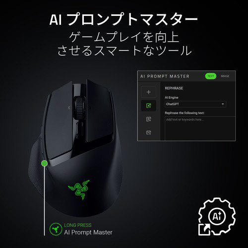 簡単にアクセスできる 10個のコントロールで、どんな状況でもカスタマイズされた精度を実現できます。Razer Hypershift で各コマンドに二次機能を割り当てれば、使えるコマンドが2倍になります。