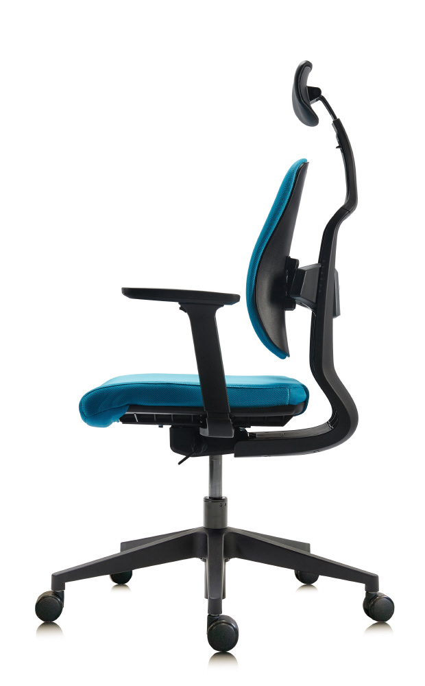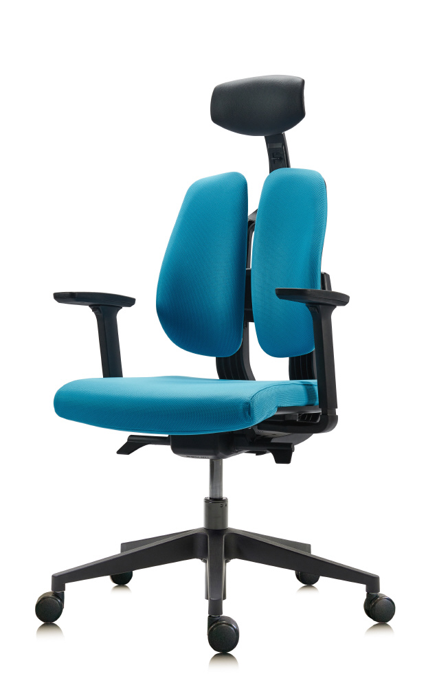 2枚の背もたれが均等に体圧を分散し、着座姿勢を長時間楽に保ちます。