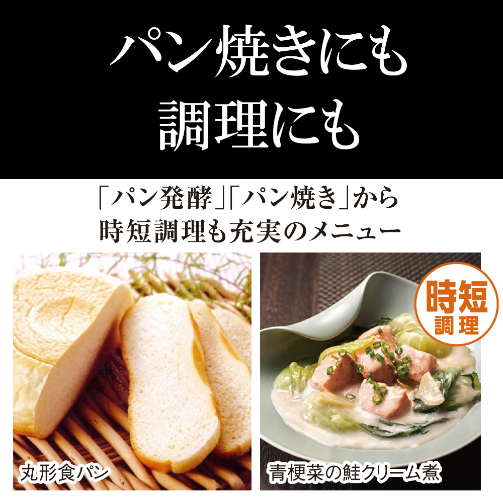 エコ炊き、白米、極うま、少量旨火炊き、早炊き、少量高速、冷凍ご飯、炊込み・炊込みおこげ、おかゆ、玄米、雑穀、麦めし押麦、麦めしもち麦、おこわ、調理、ケーキ、パン発酵、パン焼き