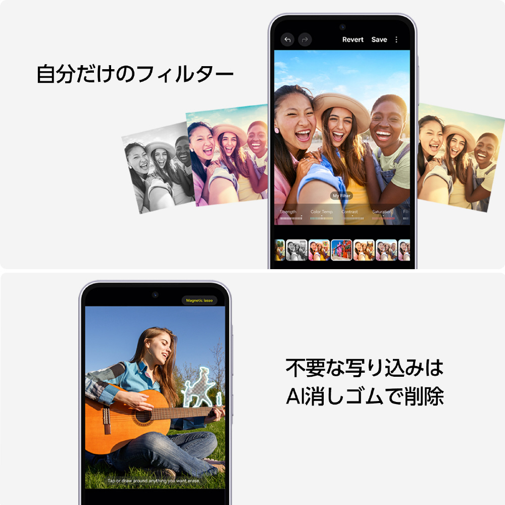 ギャラリーアプリのAI消しゴム機能なら、撮影後の写真の背景に写り込んでしまった人物やモノをAIが自動で認識して、ワンタップで削除できる※2。消したい対象物をタップすれば追加で削除も可能。