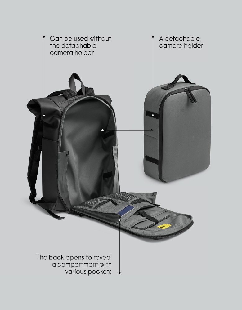 取り外し可能なカメラホルダーと調節可能な仕切りを備えており、写真家にもそうでない人にも最適です。