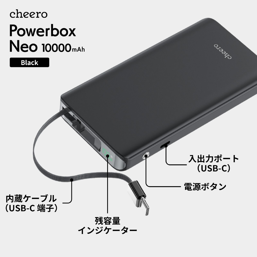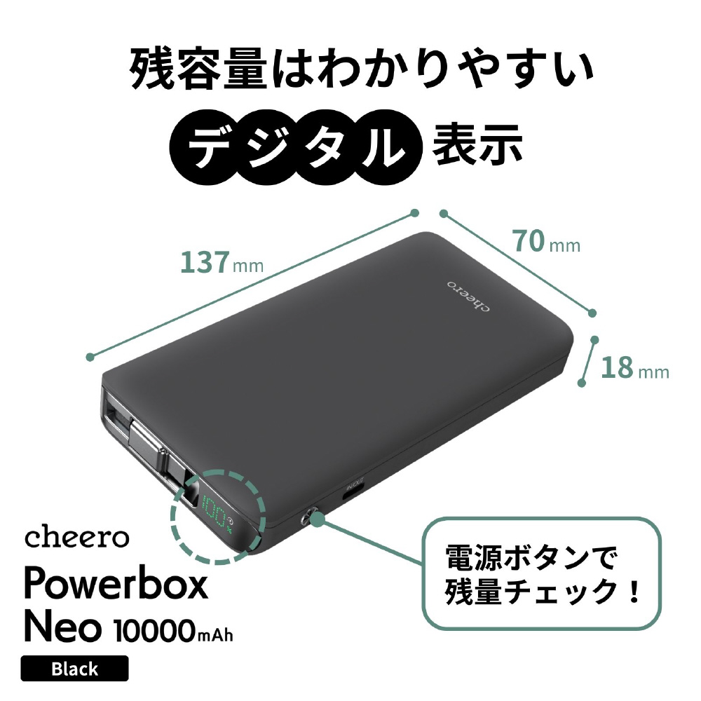 Powerbox Neo 10000mAh cheero ブラック CHE-132-BK [USB Power Delivery・Quick Charge対応 /2ポート]