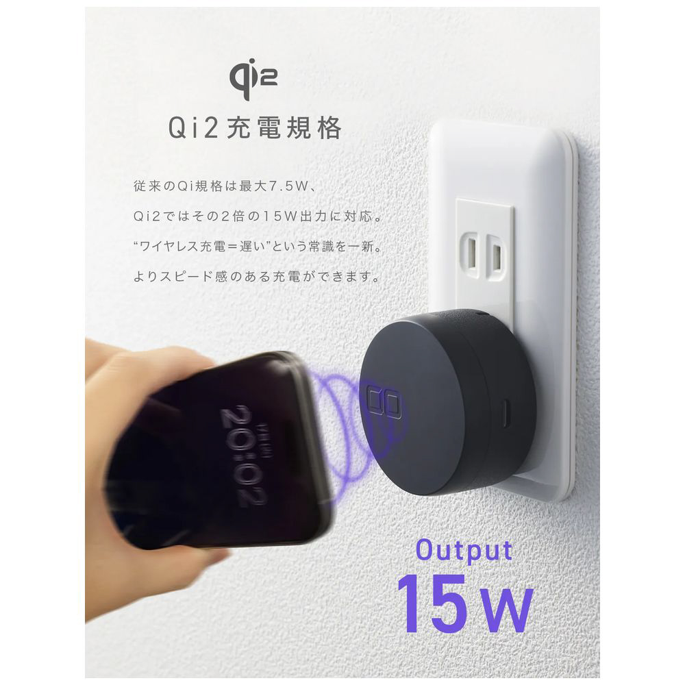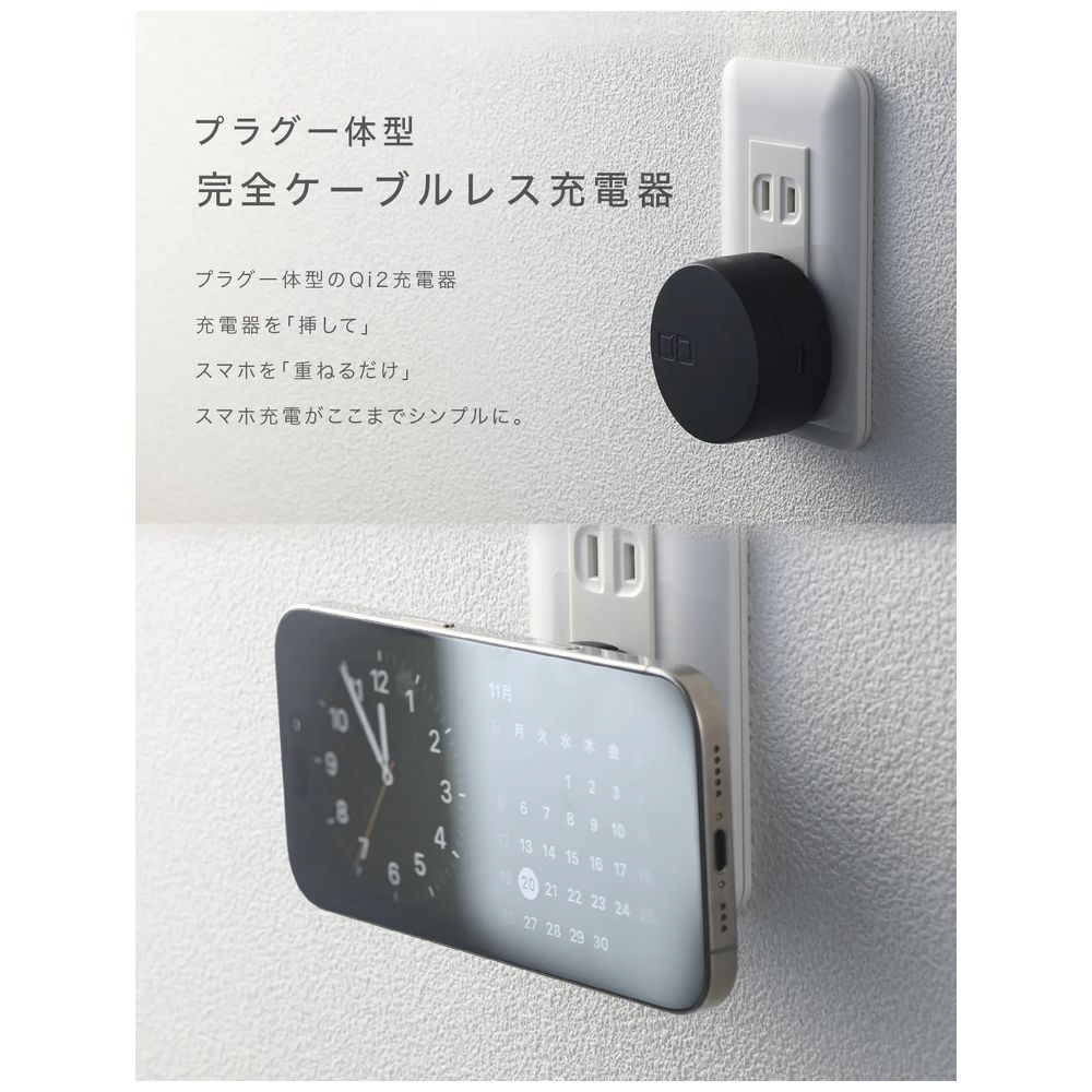 完全ケーブルレスを実現したコンセントプラグ一体型充電器Qi2規格認証チップを搭載卓上ワイヤレス充電スタンドとしても使える2Way仕様