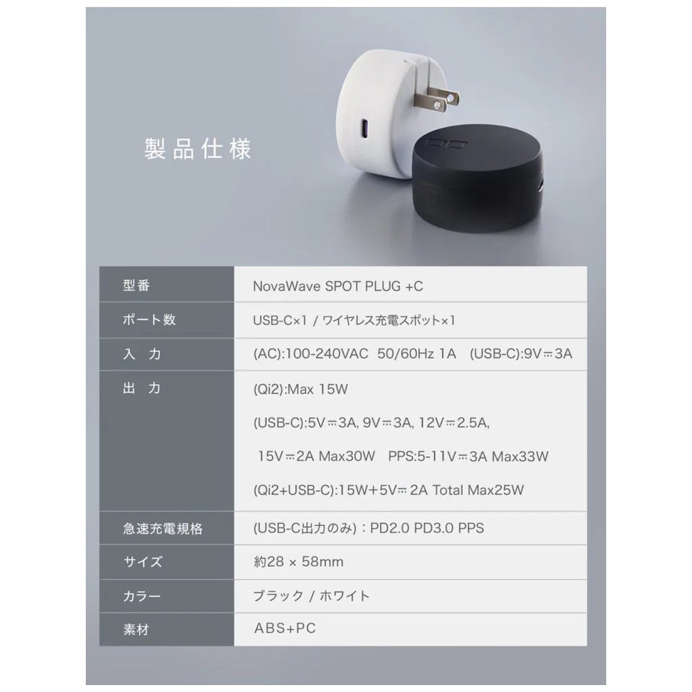 NovaWave SpotPlug+C ブラック CIO-WL15-PLUG1C-30W-BK [USB Power Delivery対応 /15W]