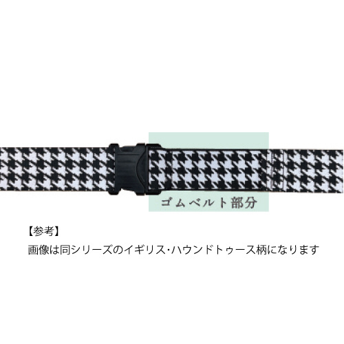 ベルトの一部がゴム製になっておりスーツケースにぴったり装着が可能です。ベルト本体、ゴム部分も織りによってつくられており、高級感があります。