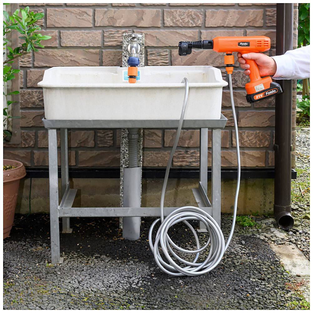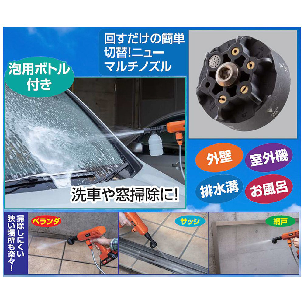 ノズルの取替不要!パワフルな水圧でベランダ・サッシもキレイに