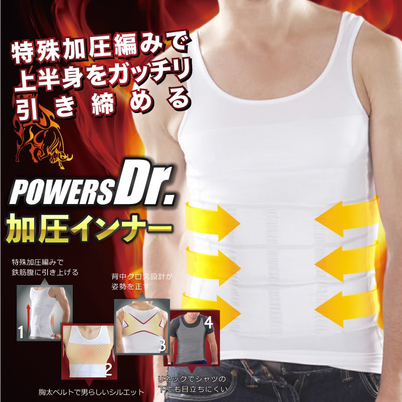 メンズ 加圧シェイプタンク ランニングタイプ ホワイト POWERSDr.005 [メンズ /Lサイズ]