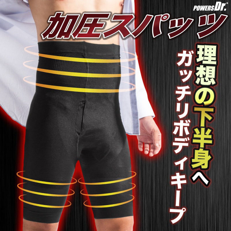 メンズ 加圧スパッツ 腹部〜太腿周り ブラック POWERSDr.007 [メンズ /Mサイズ]