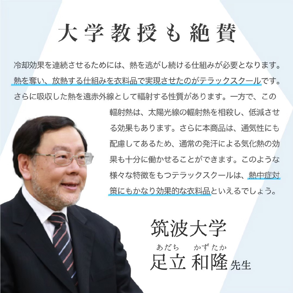 またビジネスにもカジュアルにも洋服と合わせやすい体幹の体熱を放熱&遮熱に特化したミニマルなデザイン。