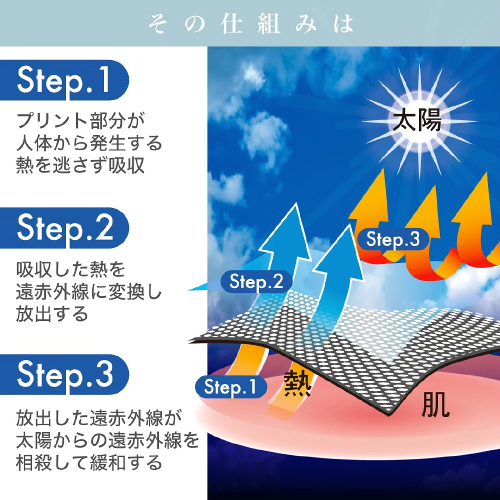 放熱効果を持つ鉱石粉末を全面プリントした冷感インナー。