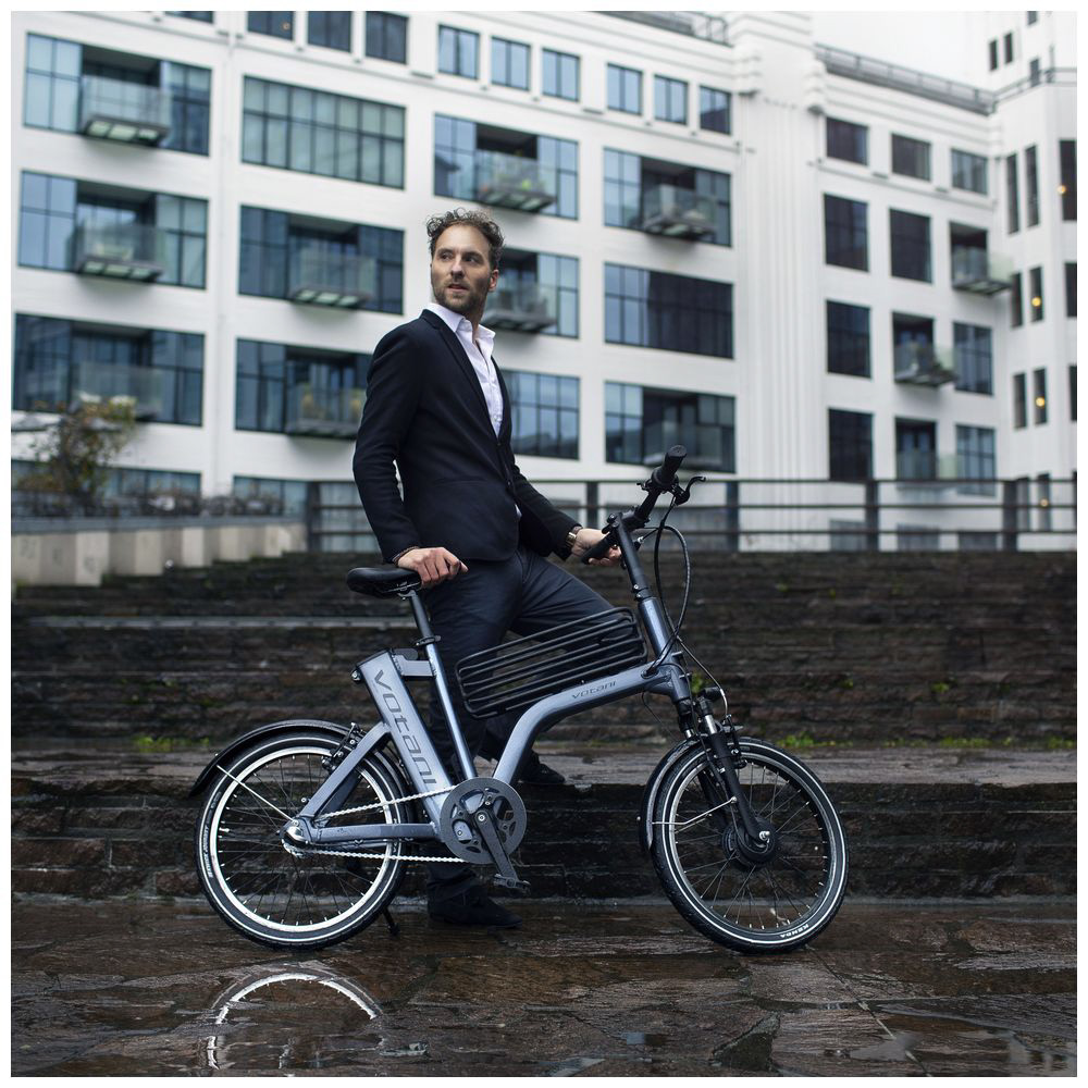 センターバスケットが印象的なハンサムなモデル。軽量アルミフレームを採用した、 20インチモデルの電動アシスト自転車。