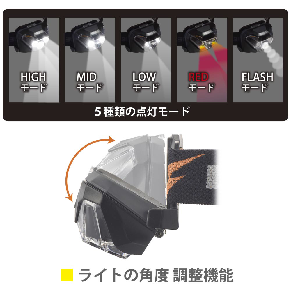 ●5種類の点灯モード(HIGH/MID/LOW/RED/FLASH)