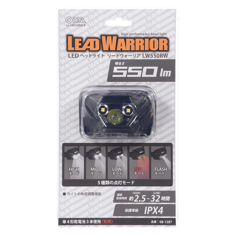 LEDヘッドライト リードウォーリア 550ルーメン LC-LW550RW-K [LED /単4乾電池×3 /防水対応]