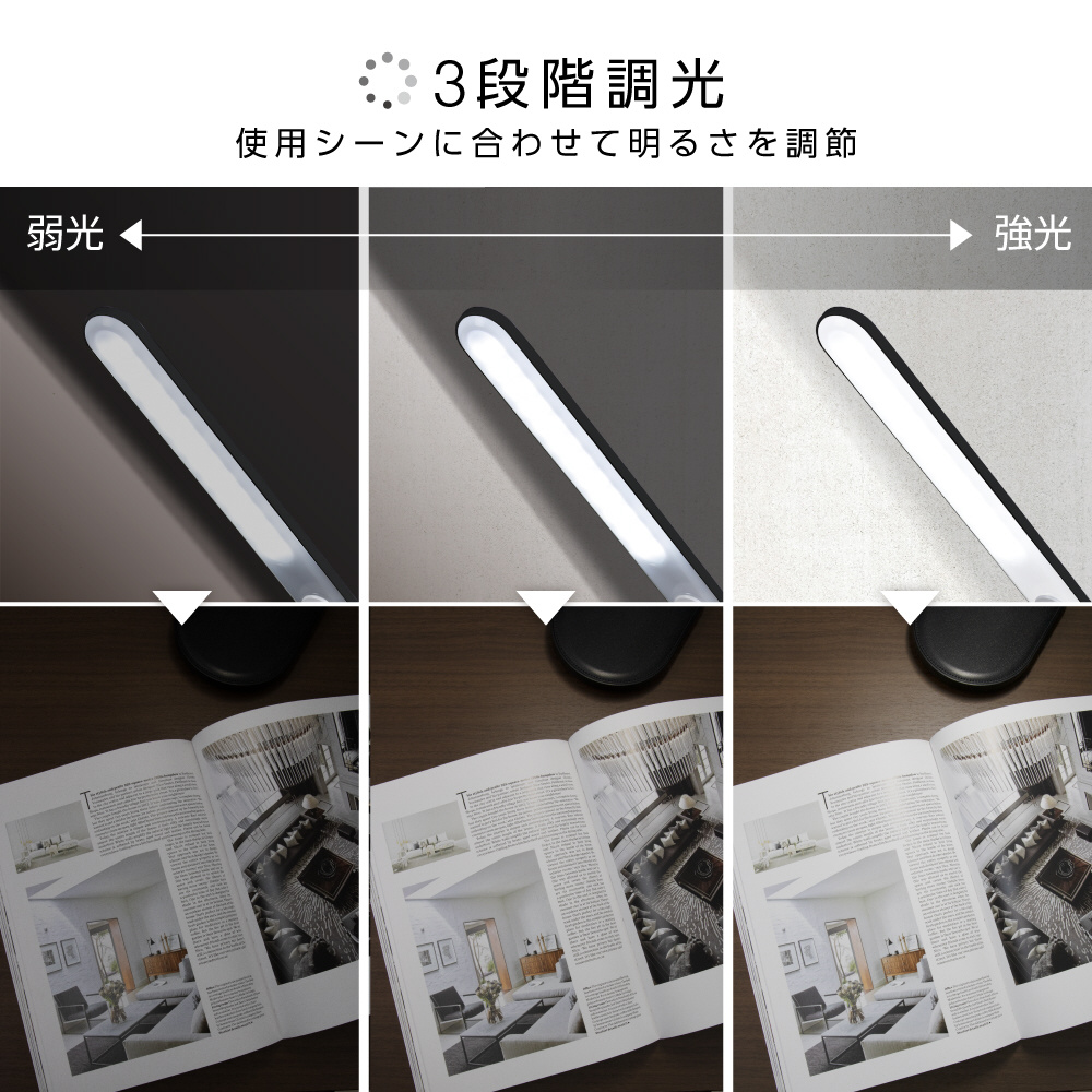 ■明るさは3段階で調節可能で、アーム角度も調節可能です。