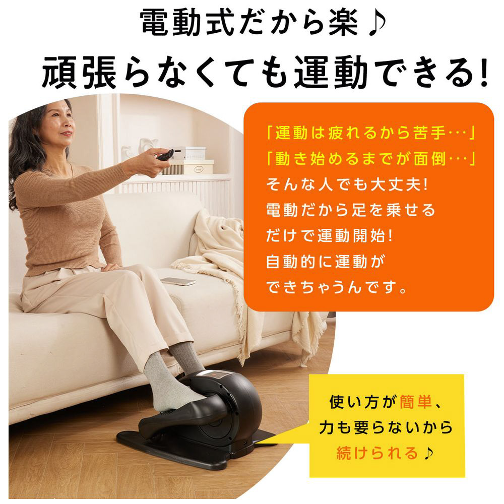 電動式だから力も要らないので、続けられる!頑張らなくても運動できる!
