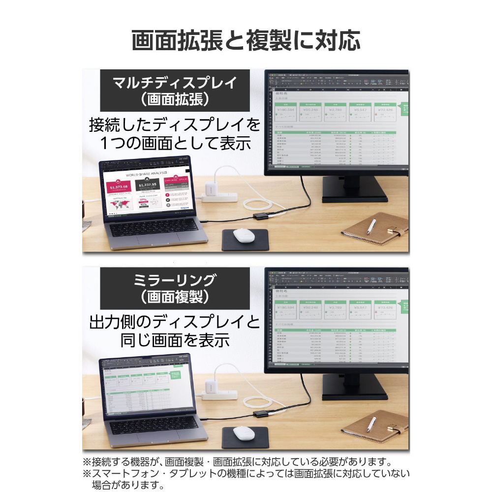 ※スマートフォン・タブレットの機種によっては画面拡張に対応していない場合があります。