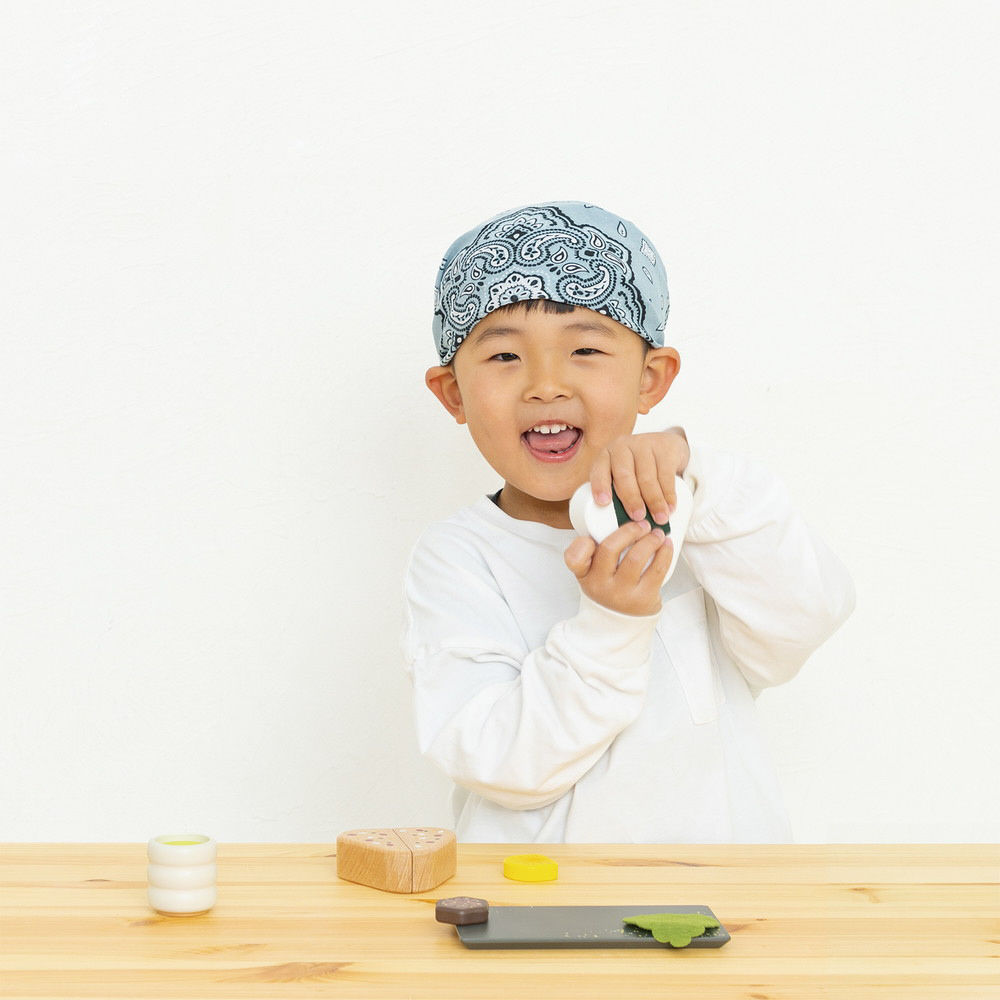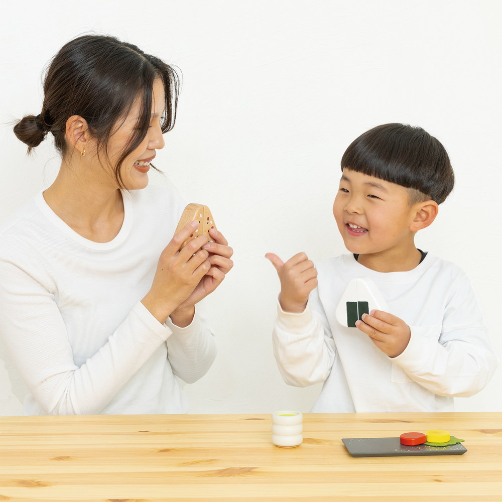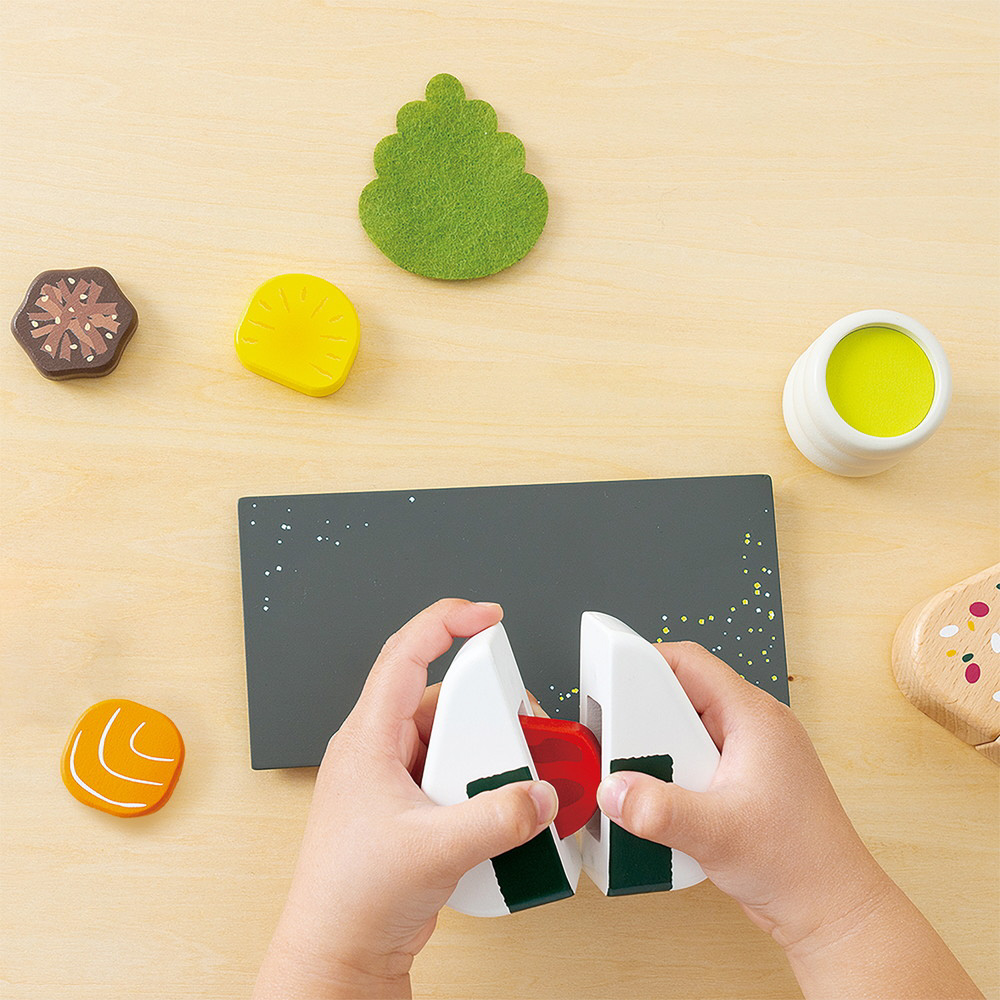 具材を選んでおにぎりを握ろう。おにぎりを割れば具材が出てきます。