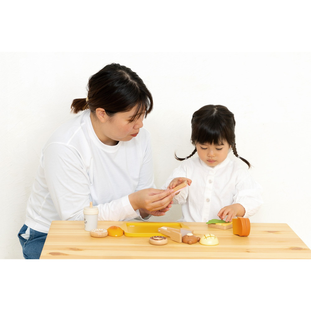お好きなパンを選んでトングでつかんでトレーに載せよう。