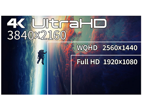 ■4KはフルHD(1920×1080)解像度の約4倍の作業領域を実現する3840×2160ドットの解像度となり、高精細な表示を実現します。ゲームプレイ時だけでなく、デスクワークに使用時にも高い生産性を実現できます。