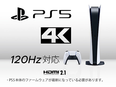 ■ゲーミングPCだけでなく、PS5との4K:120Hz接続に対応し、大画面で高精細なゲームを存分に楽しめます。また、可変リフレッシュレート(VRR)にも対応し、ティアリングやスタッタリングを軽減し、よりなめらかにVRR対応ゲームを表示します。