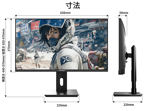 ■高さ調整が可能な昇降式多機能スタンドを搭載、最大130mmの範囲(横置時)で最適な高さに画面を調整可能です。また、縦画面として使用出来るピボット(回転)機能にも対応します。スイーベル(首振り)機能は、左右各30°の範囲で動かせます。