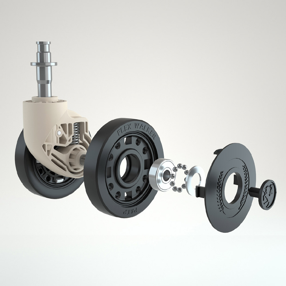 滑らかな走行と静音性を実現するキャスター”Flex Walker” ※特許取得済