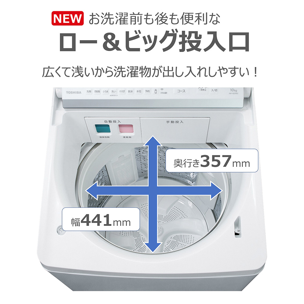 洗剤自動投入機能搭載、ゆとりの大容量タイプ。