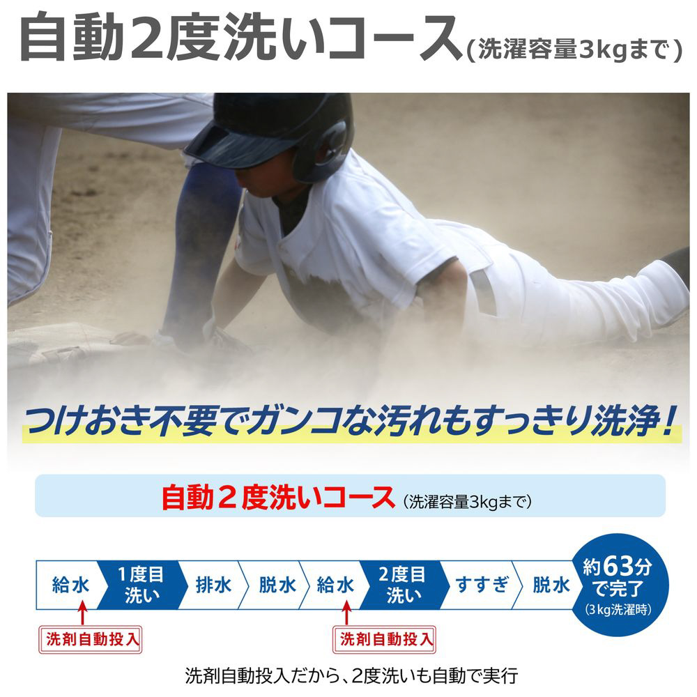 さらに、自動投入ならではの自動2度洗いコースも搭載。