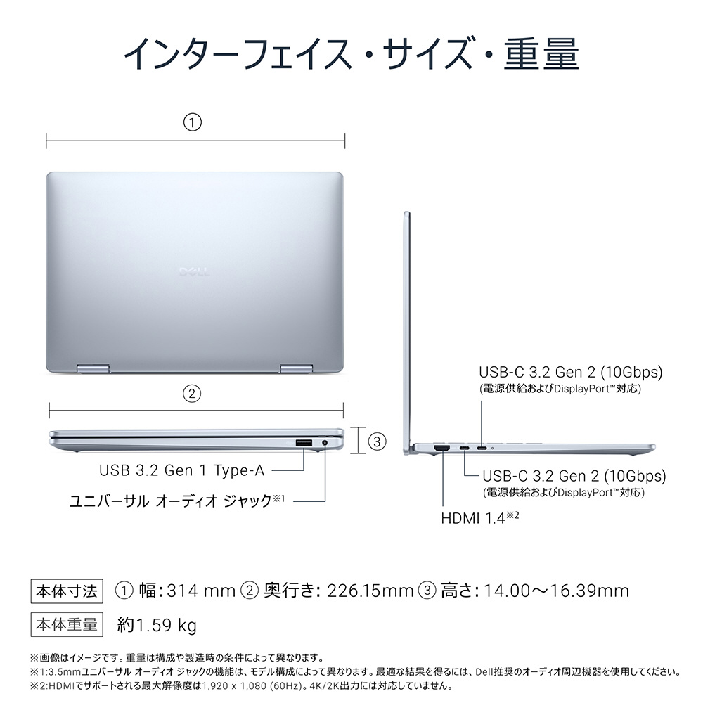 ノートパソコン Dell 14 Plus 2in1 アイスブルー CCL54P-FNHBC