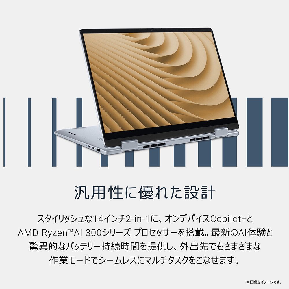 スタイリッシュな14インチ2-in-1に、オンデバイスCopilot+とAMD Ryzen AI 300シリーズ プロセッサーを搭載。最新のAI体験と驚異的なバッテリー持続時間を提供し、外出先でもさまざまな作業モードでシームレスにマルチタスクをこなせます。