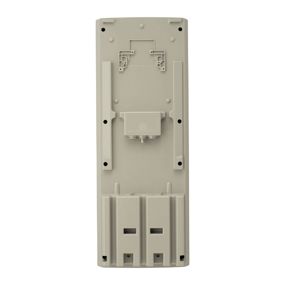 腐食の原因となる金属部分を減らし耐食性をアップ。筐体のデザインも一新、直線的ですっきりとしたシンプルなデザインを採用しました。さらに、表面はマット加工で反射を抑え、外観と調和します。 背面上部に、当社指定のブースタ(別売)や混合器(別売)など関連機器の取付が可能です。住宅壁面への施工を最小限にした上で、見た目もすっきりと施工ができます。
