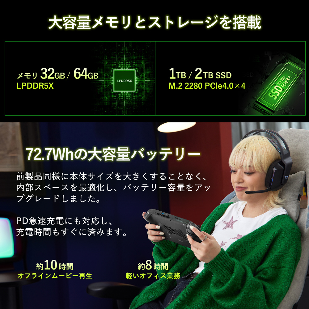 AOKZOEA1X376420 ポータブルゲーミングPC AOKZOE A1X [8.0型 /Windows11 Home /AMD Ryzen AI 9 /メモリ:64GB /SSD:2TB /無し /2025年7月モデル]