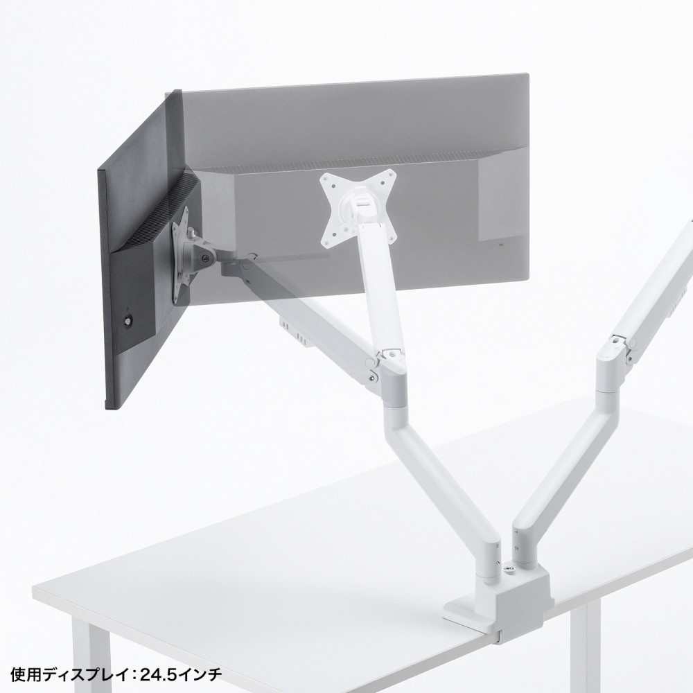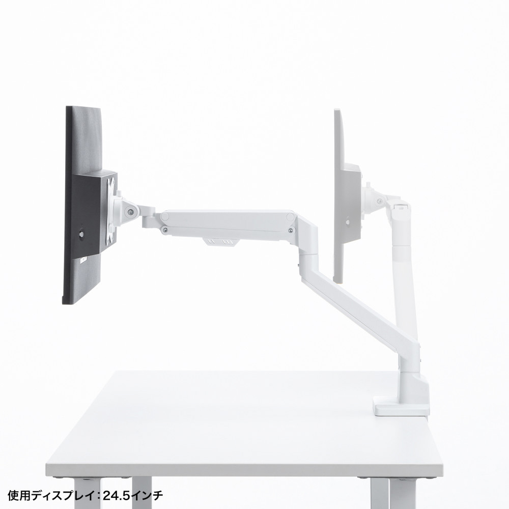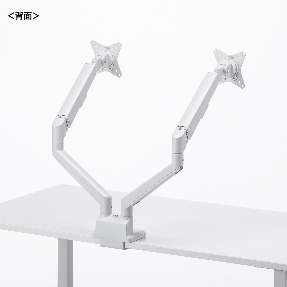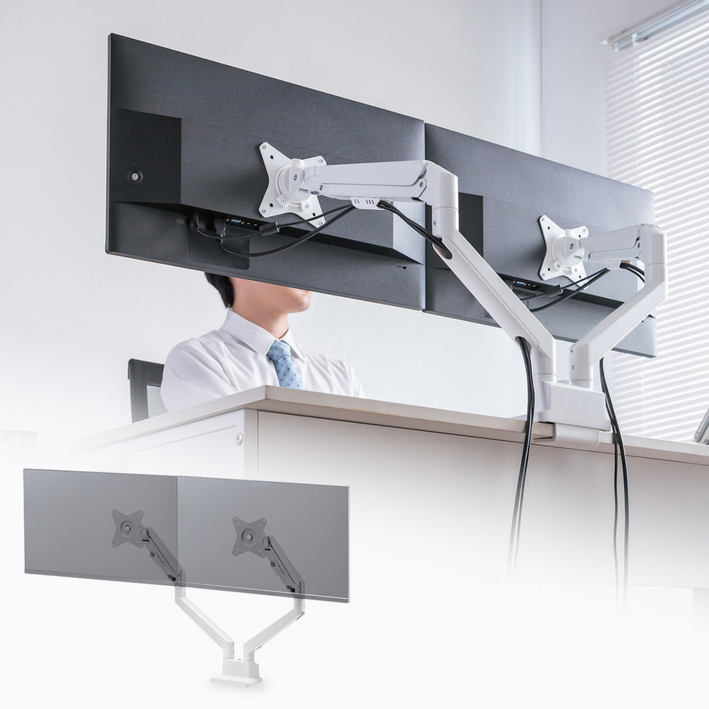 ■17〜32インチサイズのモニターに対応するガススプリング式のデュアルモニターアームです。