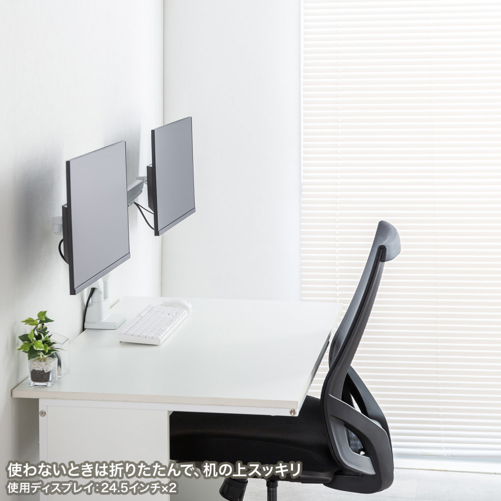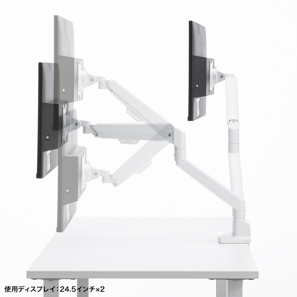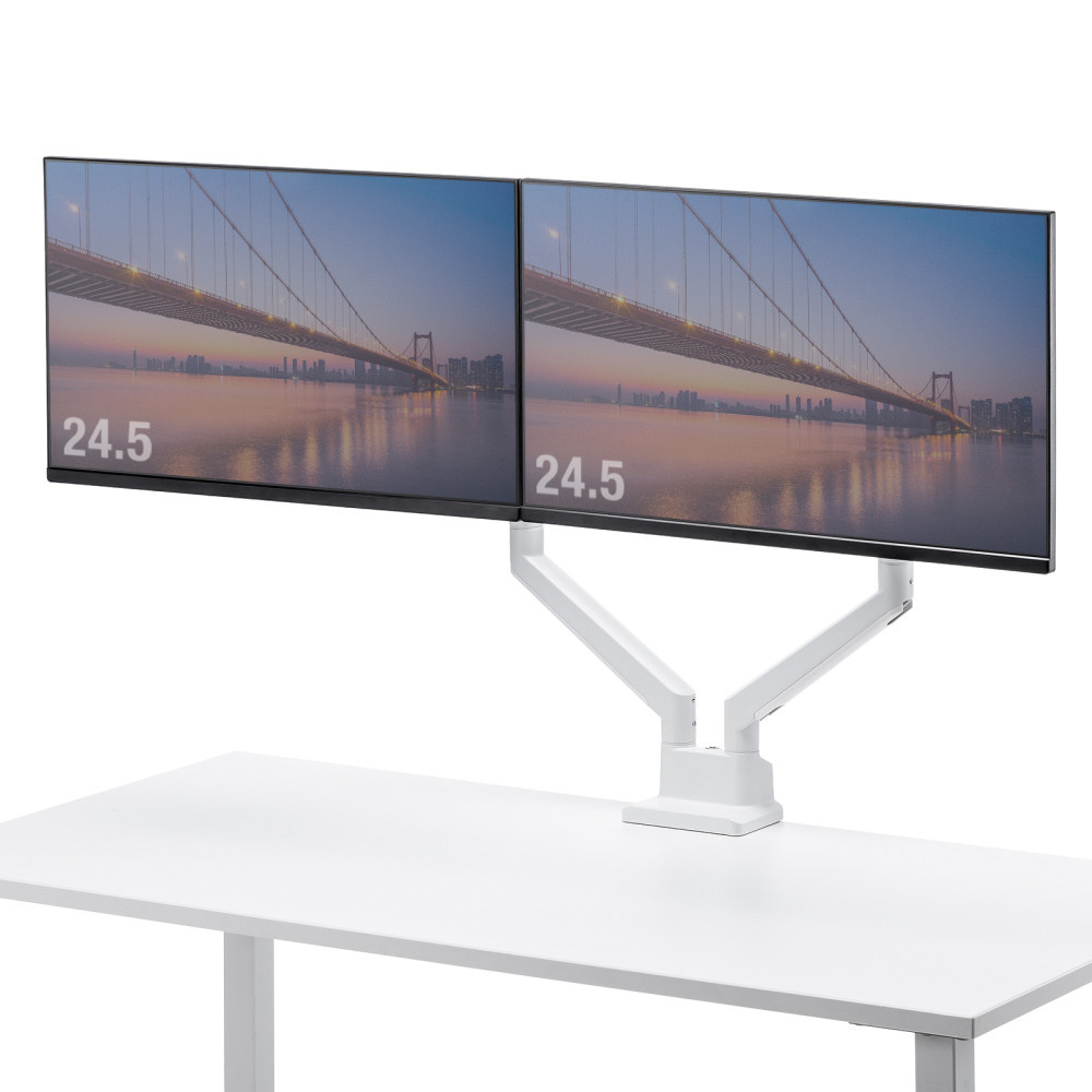 モニターアーム [2画面 /17〜32インチ] デュアル・ガススプリング式・薄型ショートクランプ ホワイト CR-LAC2403W