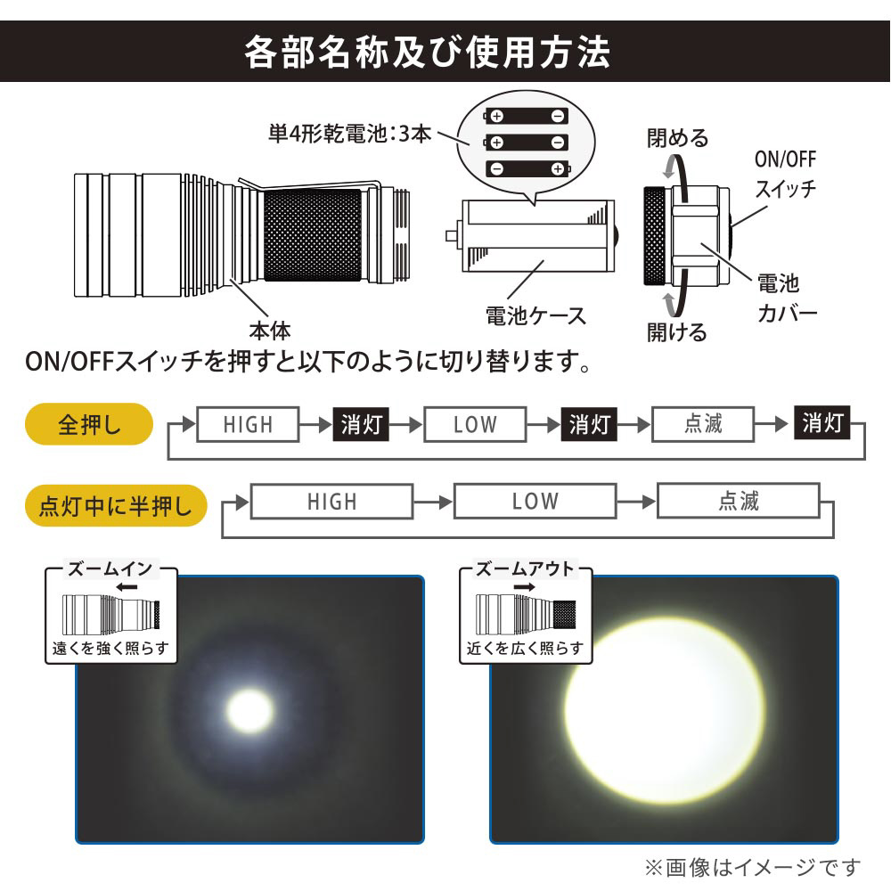 ズーム機能付きLEDライト