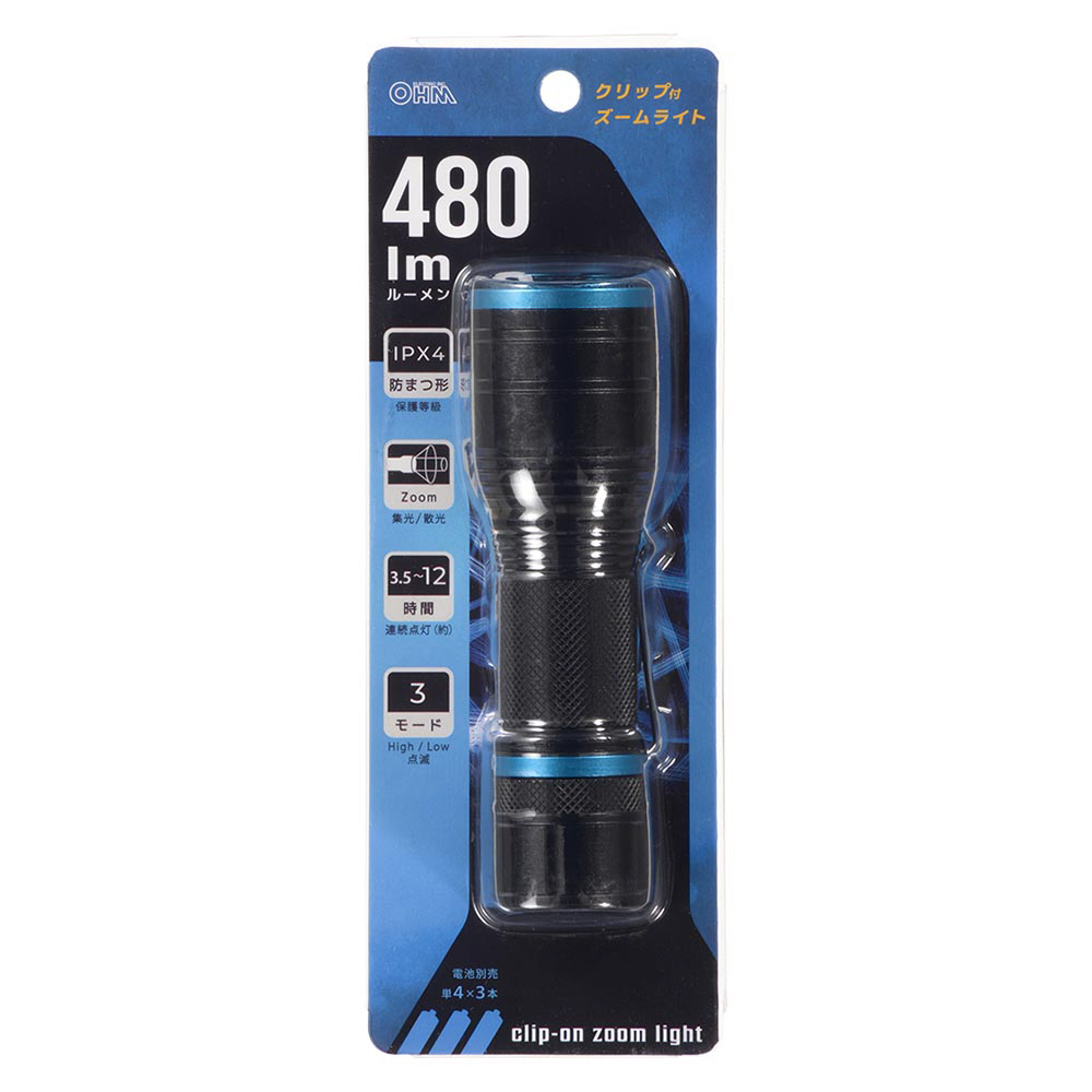 クリップ付きズームライト PZ48A7 LHA-PZ48A7 [LED /単4乾電池×3 /防水対応]