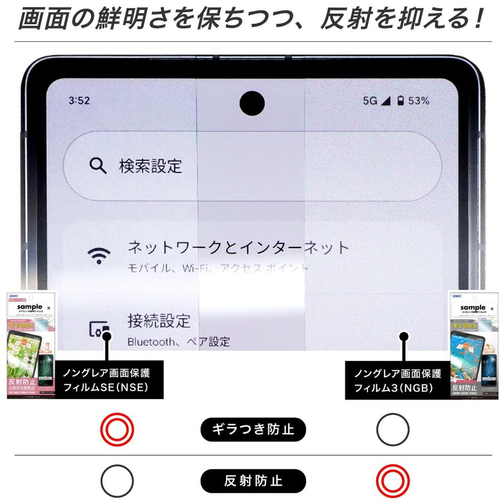 主にスマートフォン・タブレット用に開発されたマットタイプの画面保護フィルムです。反射防止の機能がどんな環境であっても画面の見やすさを維持します。