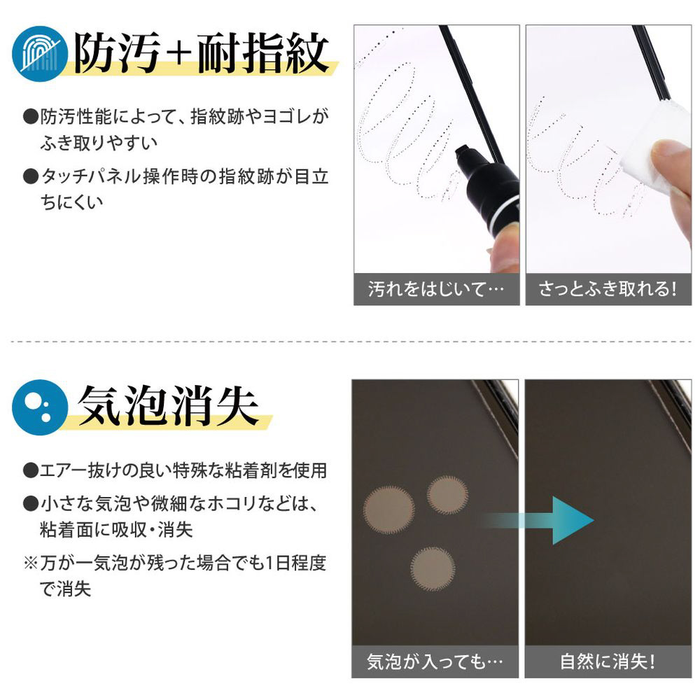 防汚性能によって、汚れがふき取りやすい。タッチ操作時の指紋跡が目立ちにくい