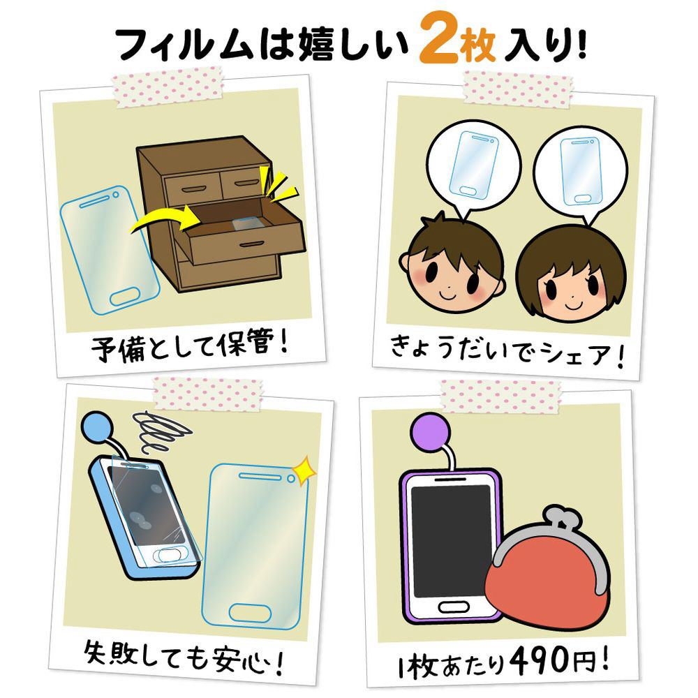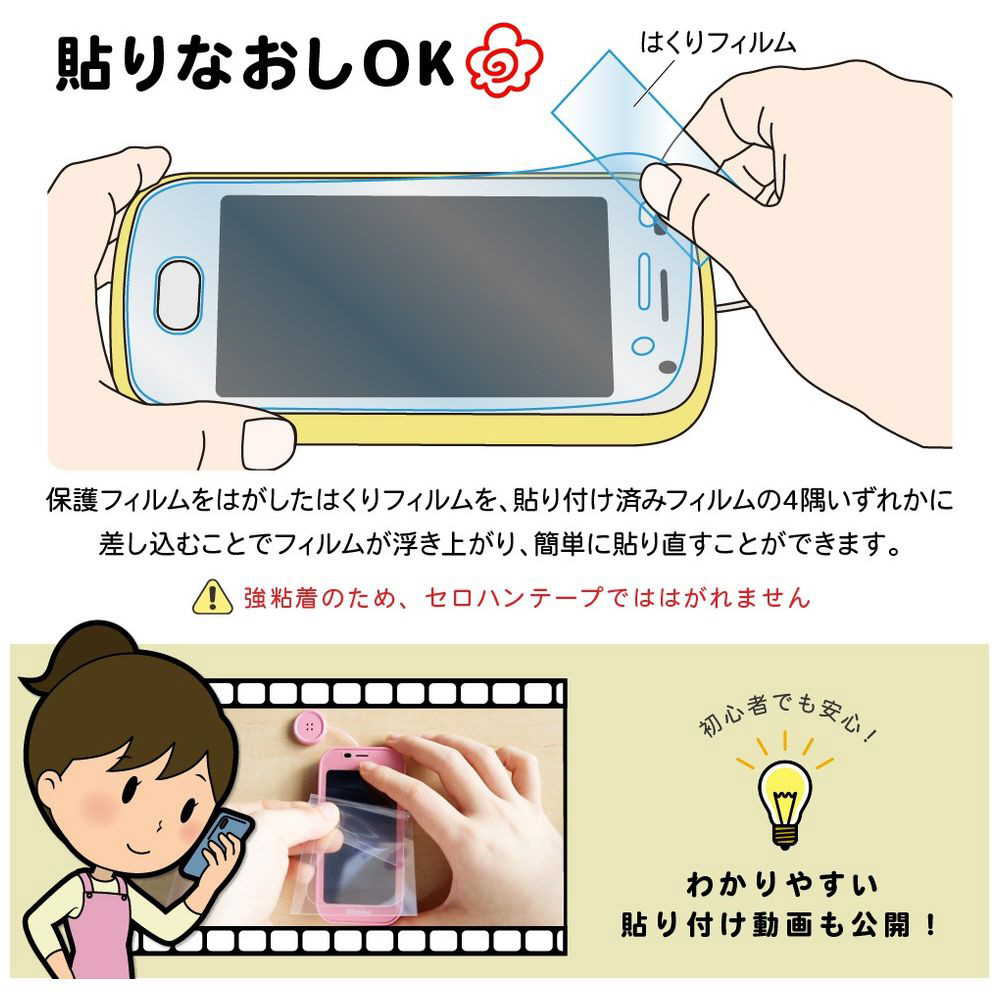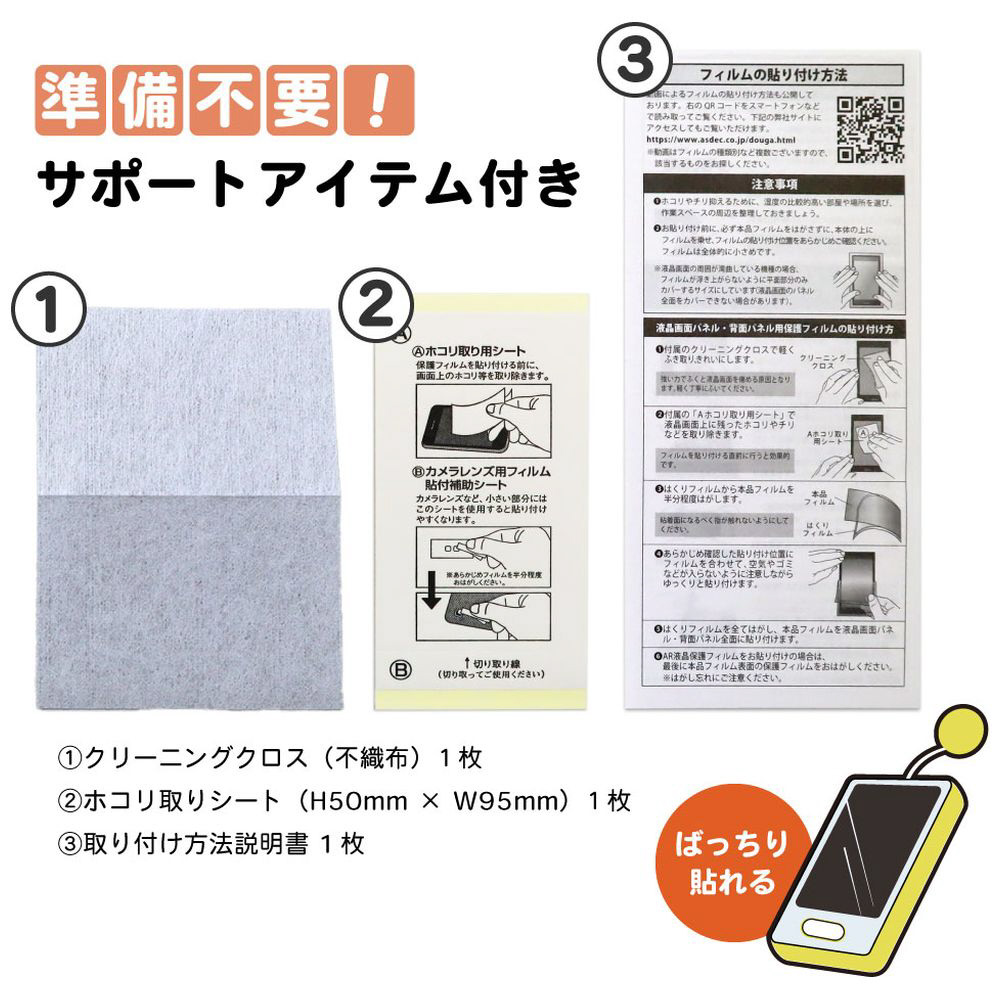 光沢タイプの透明フィルムに耐指紋・防汚機能を付加しています。コシのあるしっかりとした素材を使用し、粘着力を高めることでより一層丈夫なフィルムに仕上げています。